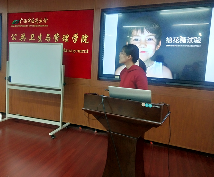邵凯老师讲课的内容是预防医学中的队列研究方法,她以“棉花糖实验”案例作为课程的开始,启发学生的思考,深入浅出地讲解队列研究在预防医学研究中的应用。杨宗藩老师通对医院为患者注射新冠“假疫苗“这一案例,来阐释卫生法学里的法律主体和客体的概念。