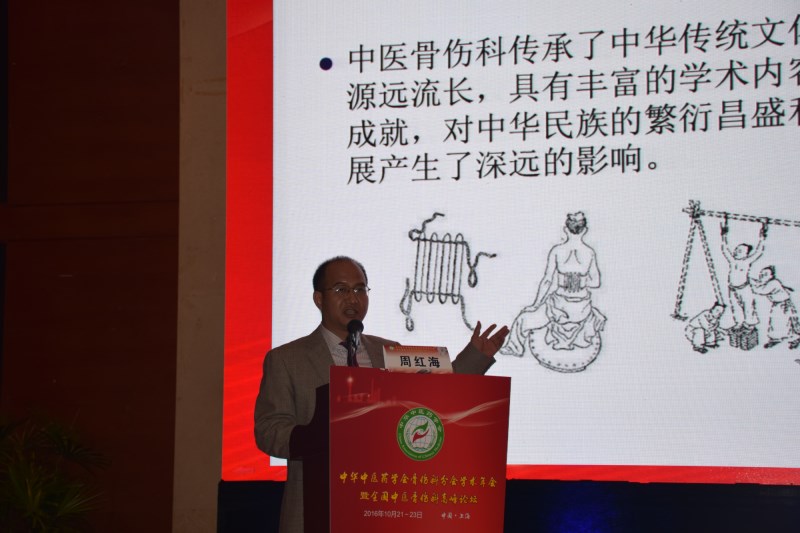 骨伤学院院长周红海教授在进行了题为《中医骨伤科教育危机与对策思考》的专题汇报,认为恢复中医骨伤科本科专业培养意义重大,对中医骨伤教学方法与授课内容也做进一步的剖析。