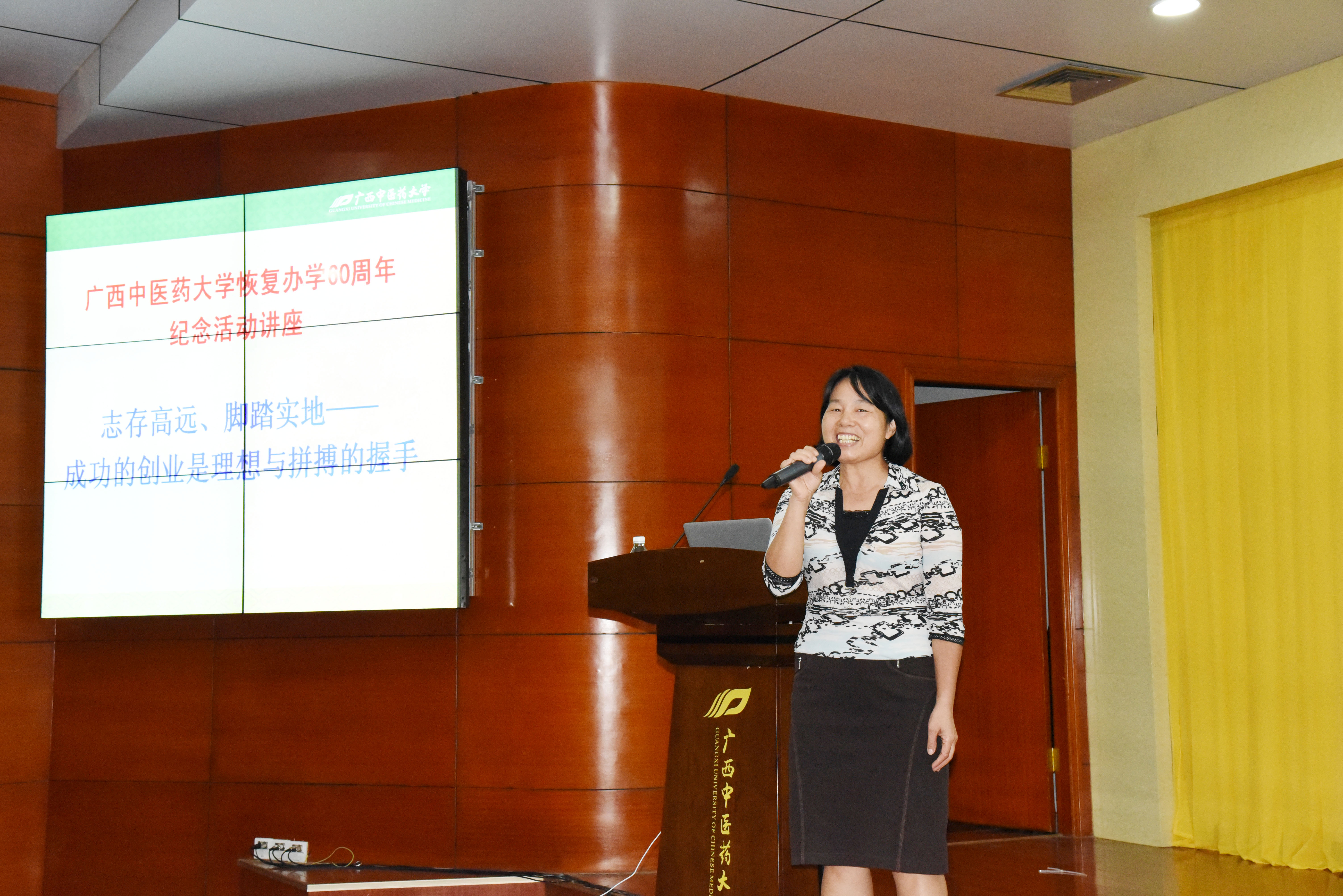 本次讲座邀请广西友和医药责任有限公司总经理俞士祯先生为主讲人。俞士祯总经理从就业创业的背景和形势入手,对创业需要的条件和要素进行了详细的分析,并结合自己的创业经历,从实战的角度详细介绍了如何策划创业以及成功创业所需要的好状态。俞士祯总经理风趣幽默的语言不时引起在座同学的阵阵掌声,现场气氛热烈,他深入浅出的讲解让同学们对创业有了更为直观的认识和了解,既开拓了同学们创业的思路,也增强了同学们就业和创业的信心。
