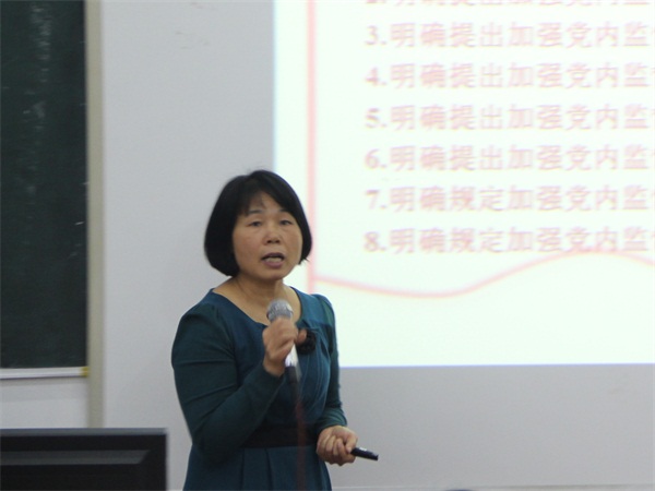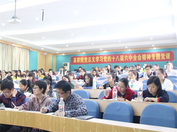 2016年12月6日,高职院党总支在明秀校区西梯一教室开展了十八届六中全会精神专题党课学习。高职院全体在校教职工党员、学生党员及入党积极分子近180人参加了学习。