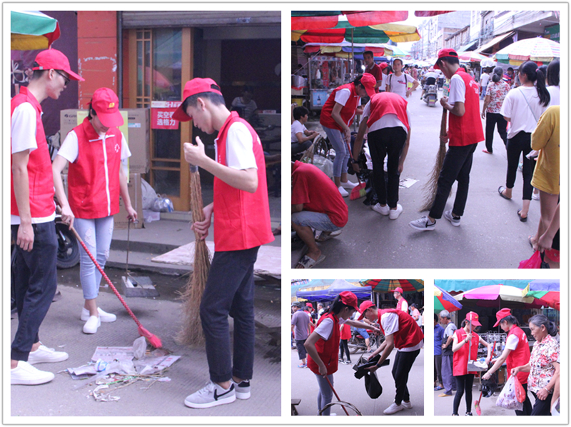 高职院(中医学校)师生在桂平市麻垌镇清扫街道