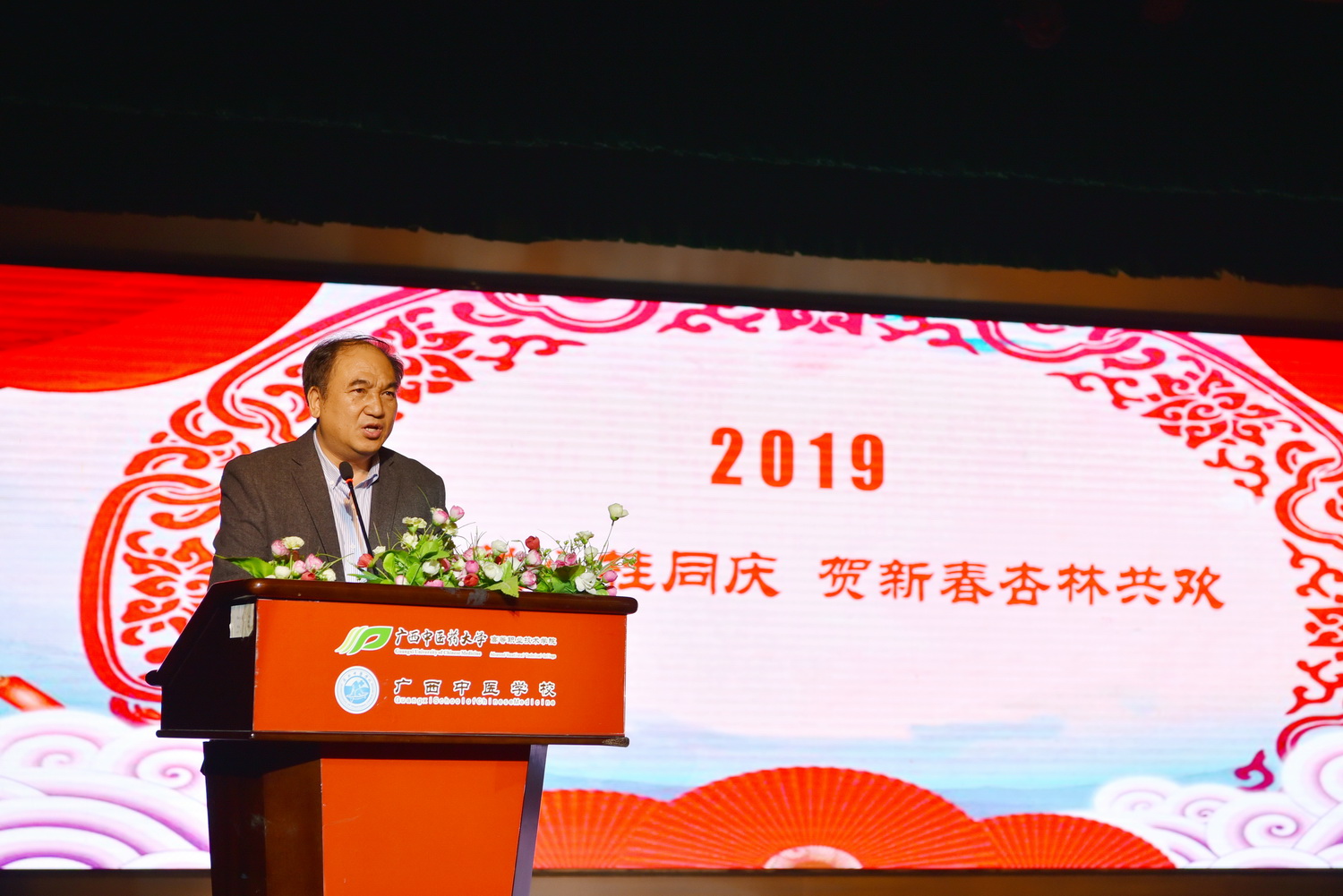 晚会开始前,刘竑清为晚会致辞,他简要地回顾中医学校在过去一年取得的骄人成绩,并对即将到来的2019年作出了新的展望,鼓励全体师生在新一年里锐意进取,务实创新,共建学校美好明天。