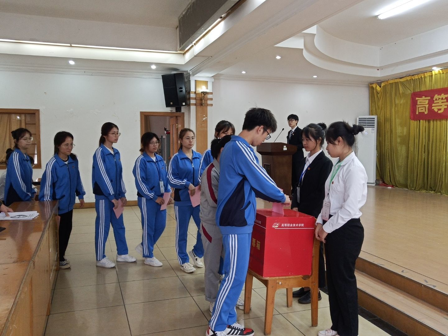 接着,全体代表通过高职院第四次社团代表大会筹备工作报告。最后,大会秉着“公平、公正、公开”的原则差额选举产生了由杨生兰等24位同学组成的高等职业技术学院第四届学生社团联合会理事。