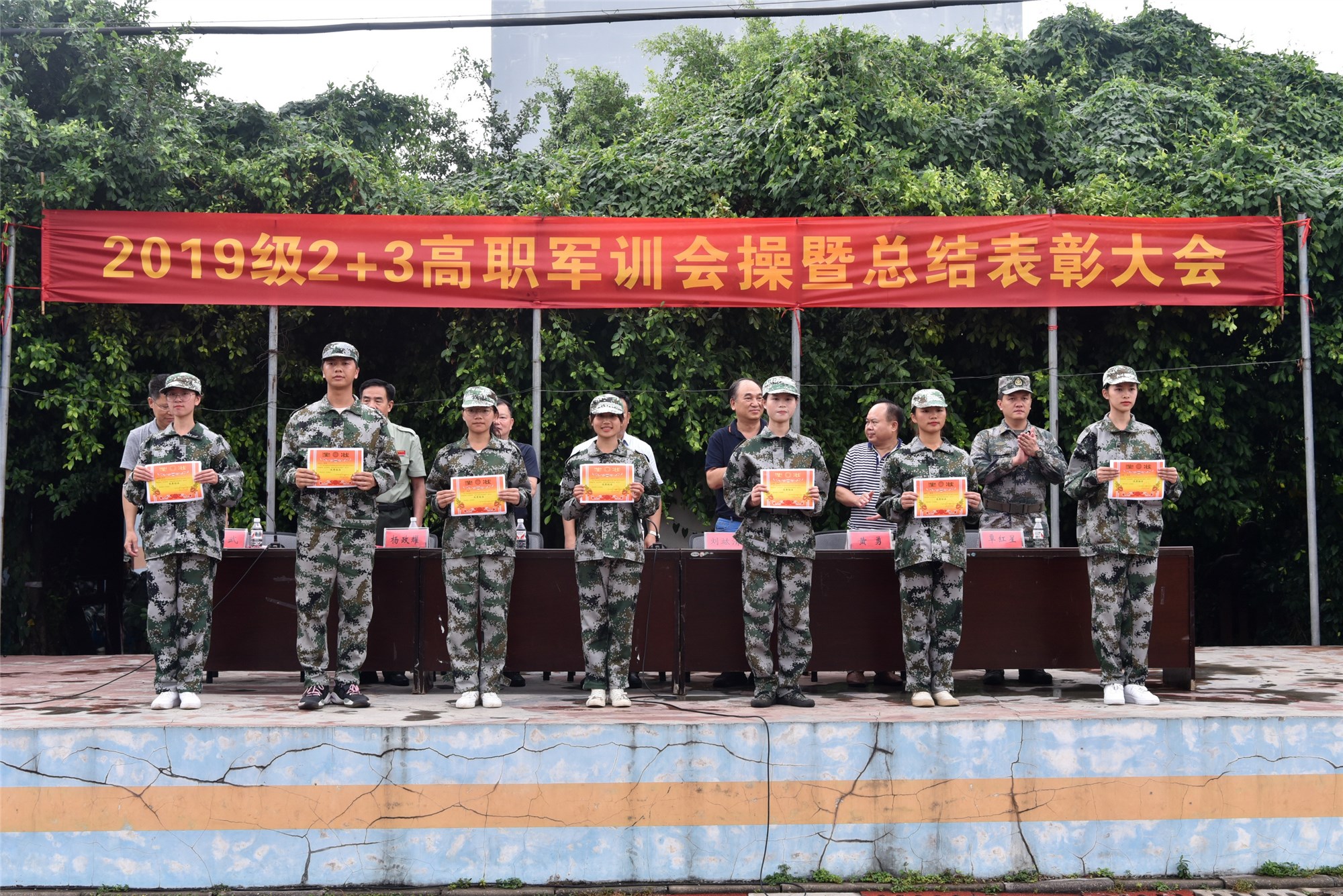 beat365平台唯一官网高职院举办2019级2+3高职军训会操暨总结表彰大会