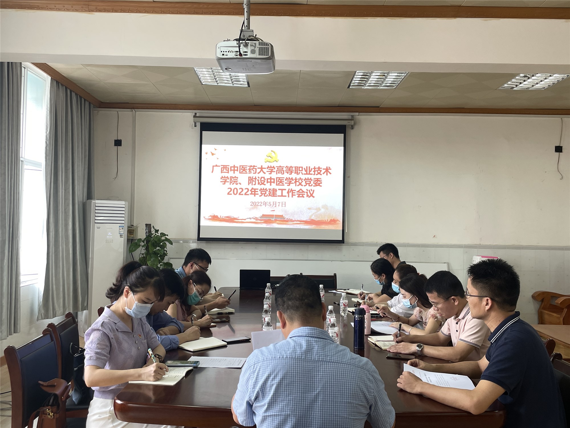 5月7日,高职院、附设中医学校在明秀校区基础楼311会议室召开2022年党建工作会议,高职院、附设中医学校党委书记蒋子华,各党支部书记、组织委员参加会议。