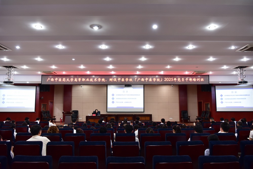 覃宇环为高等职业技术学院、附设中医学校(广西中医学校)2025年党员干部培训班学员授课