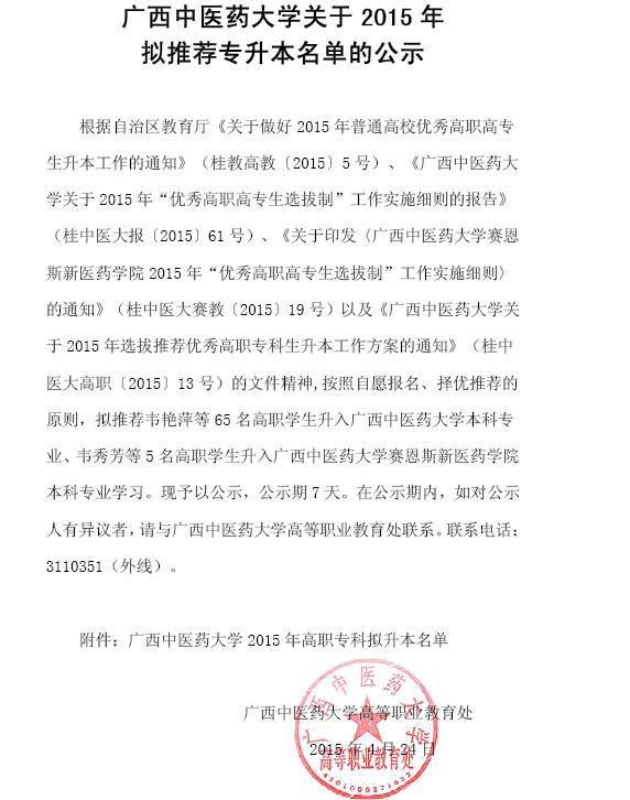 beat365平台唯一官网关于2015年拟推荐专升本名单的公示