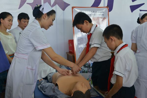 beat365吴彬校长、黄勇副校长带领护理、中医专业的老师、学生代表受邀参加了启动仪式。启动仪式上,beat365通过设立展板,发放宣传材料,组织老师和学生为前来参观的领导、老师、中小学生、社区居民等进行抢救知识培训、护牙知识教育、测量血压、针灸推拿治疗等形式进行了职业教育成果展示,使社会更深入了解beat365职业教育成果、育人理念和办学特色,进一步扩大了beat365职业教育的影响力,取得了良好的效果。