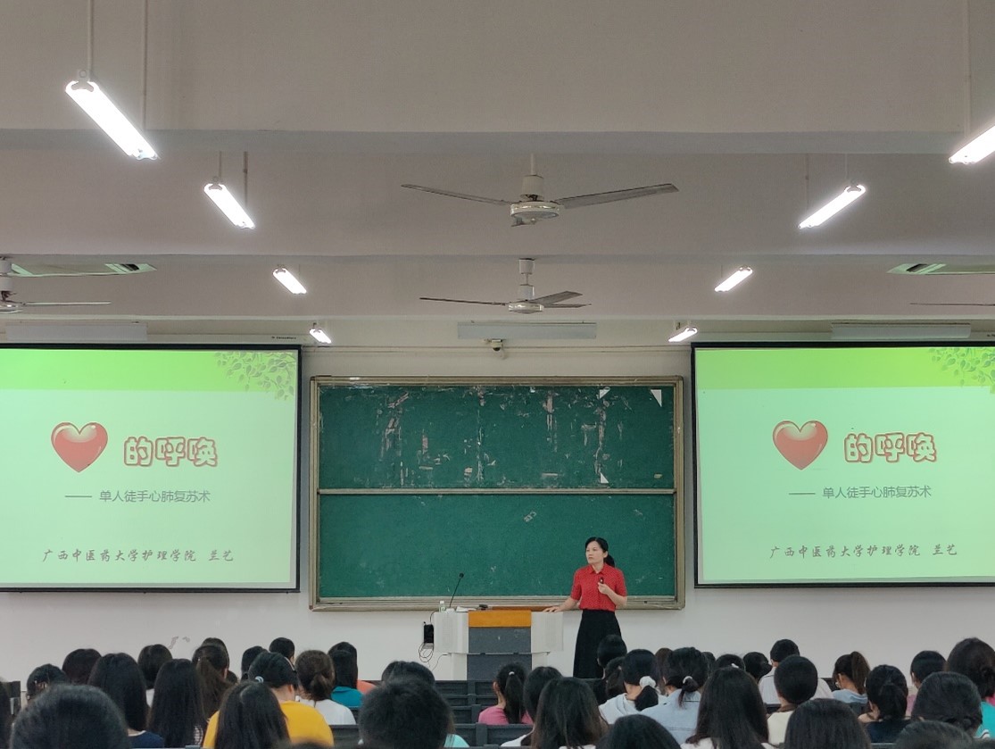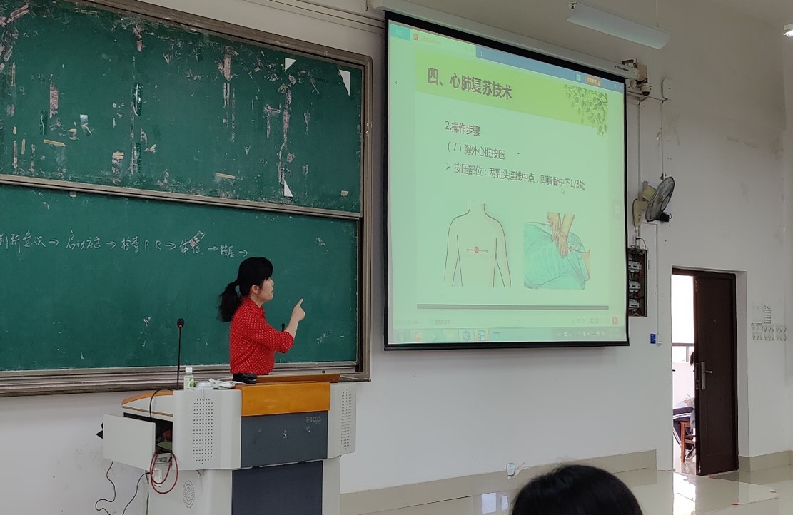 护理学基础教研室主任兰艺老师在学校自诚讲堂开讲 发布时间:2022-11-08 09:57:32 浏览次数: 次 【字体:小 大】 2022年11月6日,护理学基础教研室兰艺老师在学校自诚讲堂讲授了单人徒手心肺复苏术,200多位学生参加了讲座。兰艺老师讲授并演示了单人徒手心肺复苏术的操作,学生们学习热情高涨,纷纷加入了操作实训,体验了急救技术的实践与应用。 分享到: 【打印正文】