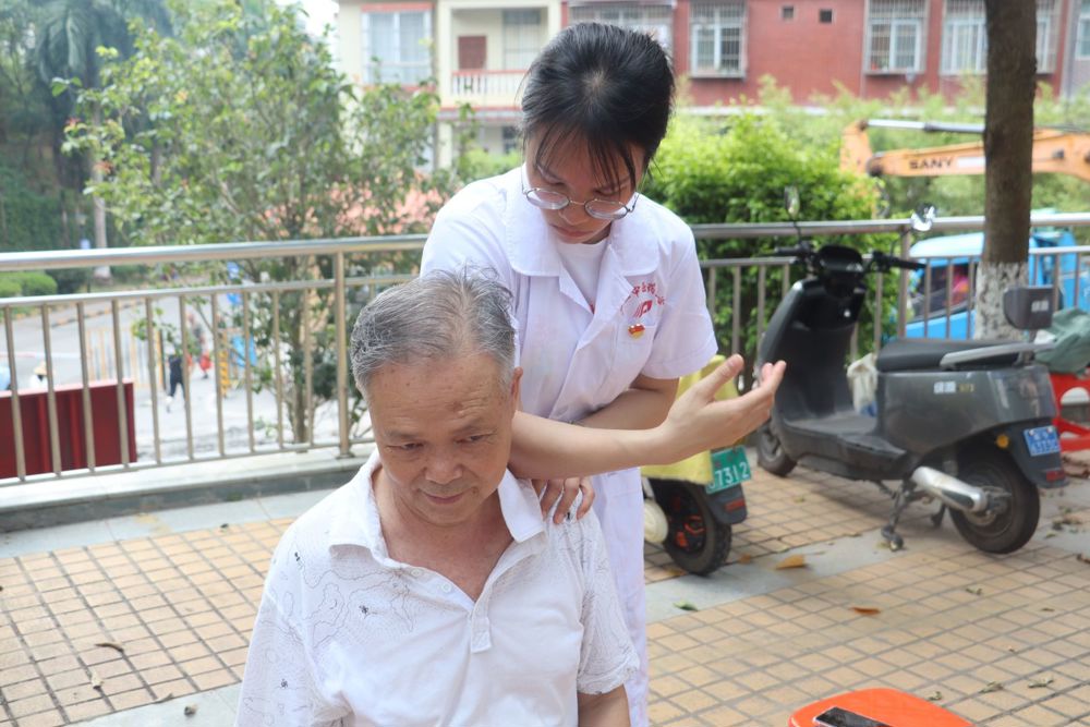 本次志愿服务以义诊形式开展,内容主要包括艾灸、测血压、八段锦、刮痧、按摩等。在活动过程中,各位同志积极为居民进行健康检查、健身气功教习、养生技术应用知识传授,帮助居民建立科学的健康理念,以良好的精神面貌和专业技术、有针对性的健康知识教育获得了社区居民的认可。