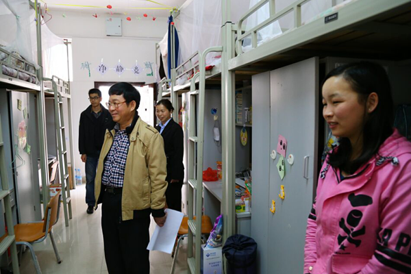 副厅级调研员李培春检查学生宿舍