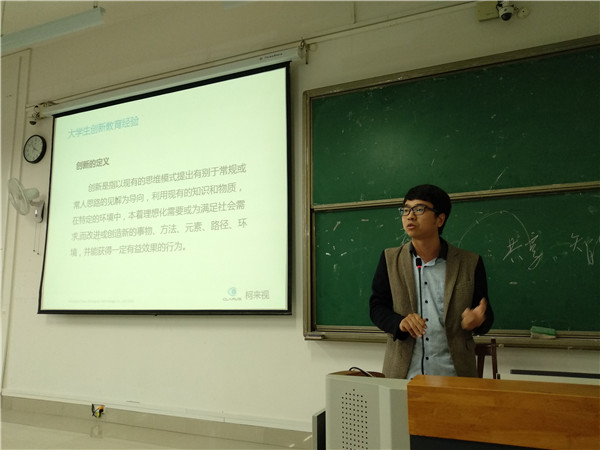 创新创业课程模块是应目前高校大力倡导创新创业而设置的。该课程模块特邀请了在第三届中国“互联网+”大学生创新创业大赛中获得国赛银奖的两个项目负责人(温州医科大学柯来视创新创业团队负责人陈航、江西中医药大学热敏灸机器人创新创业团队负责人肖源诣和黄志军)到校进行经验交流与分享。温州医科大学陈航分享了柯来视创新创业团队的成长历程以及自己在创业过程中的心得体会,江西中医药大学肖源诣和黄志军分享了热敏灸机器人技术的发展历程和创业项目成功的经验。
