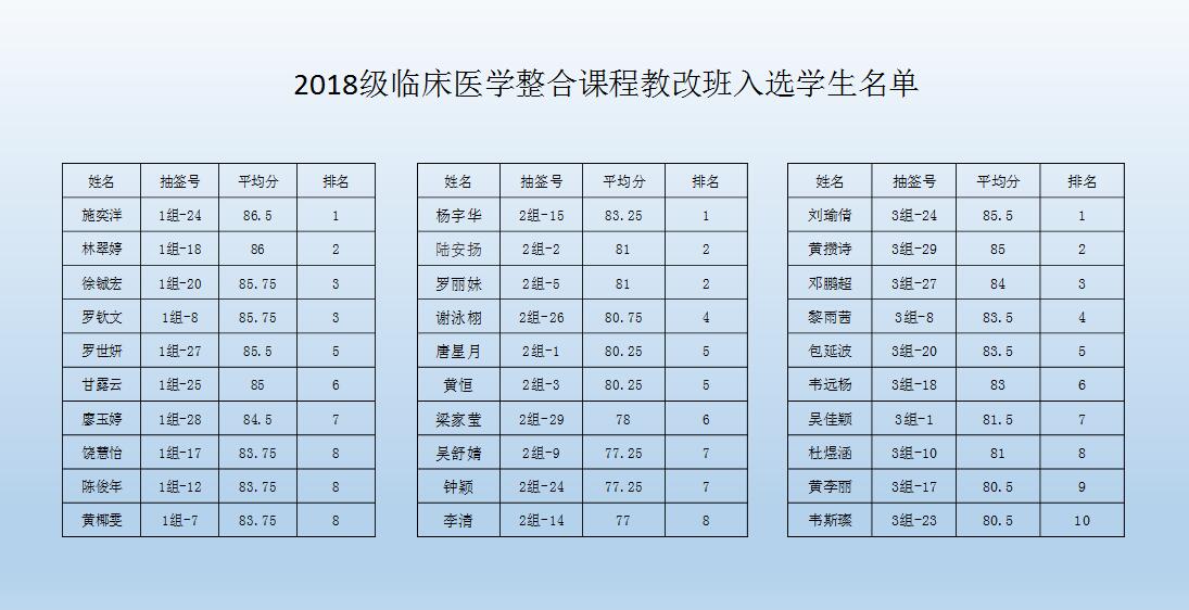 beat365平台唯一官网2018年临床医学整合课程教改班学生入选名单公示