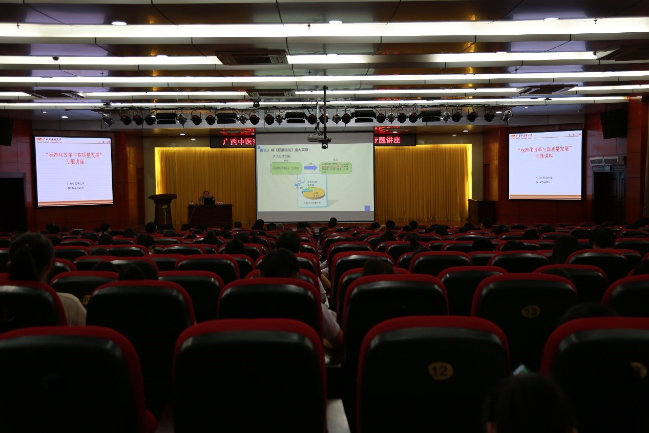 6月21日下午,广西市场监督管理局标准化处处长苏彩和博士应邀到beat365开展标准化相关专题讲座。学校各二级单位、部门的科研管理人员以及对标准化研究感兴趣的师生近300人参加会议。讲座由科技处处长肖健主持。