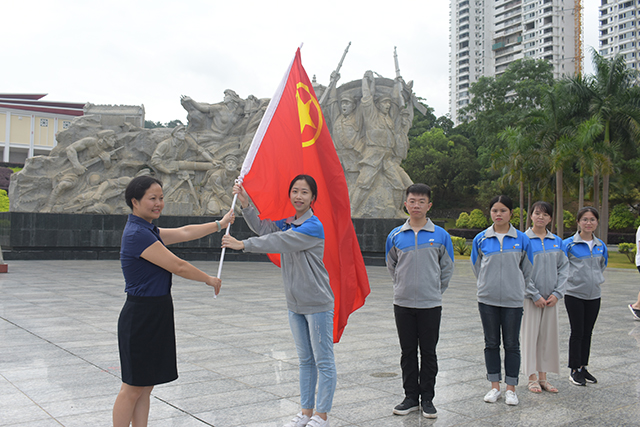 活动分授旗仪式和参观纪念馆两个部分。首先,王瑜老师为瑞康临床医学院学生团总支书记及2016级临床医学各班团支书授旗,并表示希望同学们坚定对党的信念,做有担当、有理想的时代新人。
