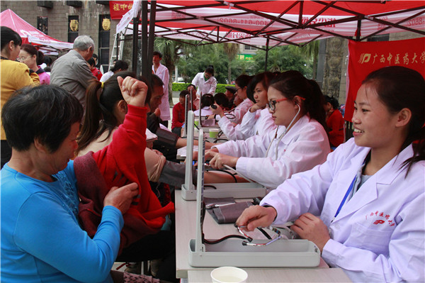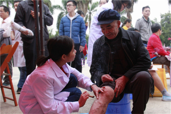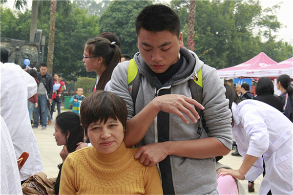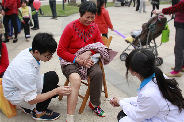 为发扬“医者仁心”的精神,践行社会主义核心价值观,2015年11月28日上午,beat365志愿服务队前往天池山庄广场开展志愿服务活动。本次活动由校团委组织,手法医学协会、青年志愿者协会、大学生红十字会、针灸协会共同协作。