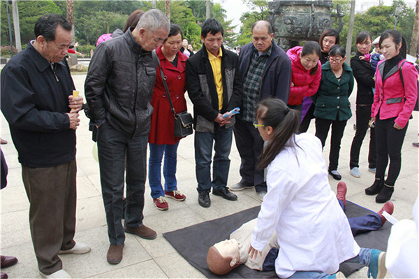 指导居民们进行急救操作