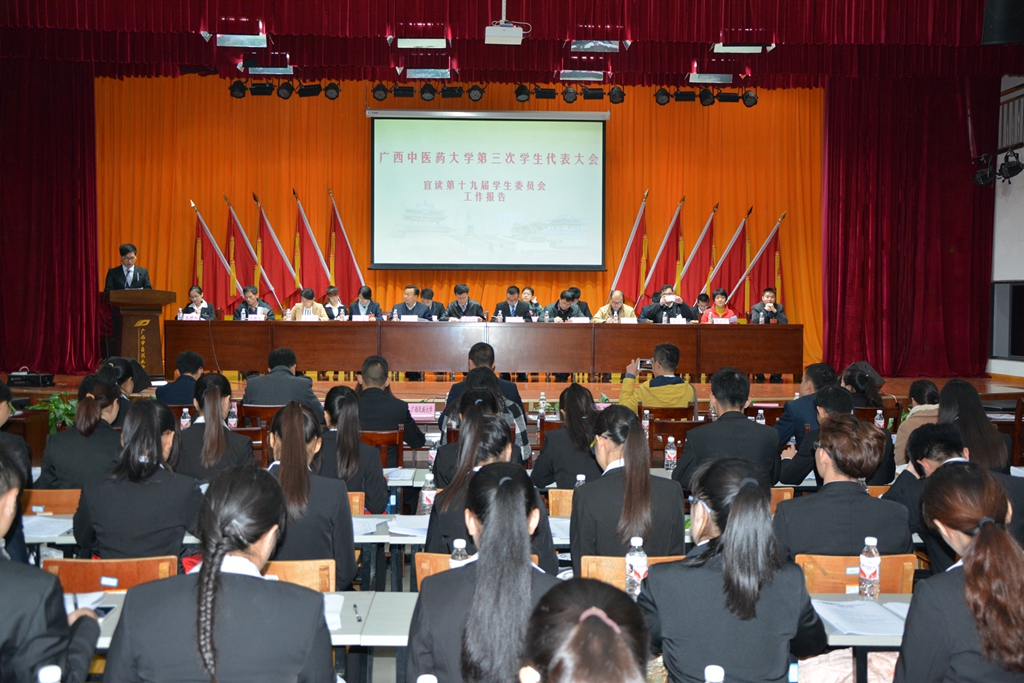 2015年12月11日晚,在beat365平台唯一官网成功举办beat365平台唯一官网第三次学生代表大会在仙葫校区大学生活动中心小礼堂隆重举行,来自全校各学院、各班级的173代表参加会议并行使神圣权利;学校党委副书记董塔健教授参加学代会并做重要讲话;学校党委组织部、教务处、学生工作部、网络信息中心、工会、图书馆、后勤处、武保部校团委等相关部门的领导以及自治区学生联合会代表、广西大学、广西师范学院等7所高校的代表出席本次大会。