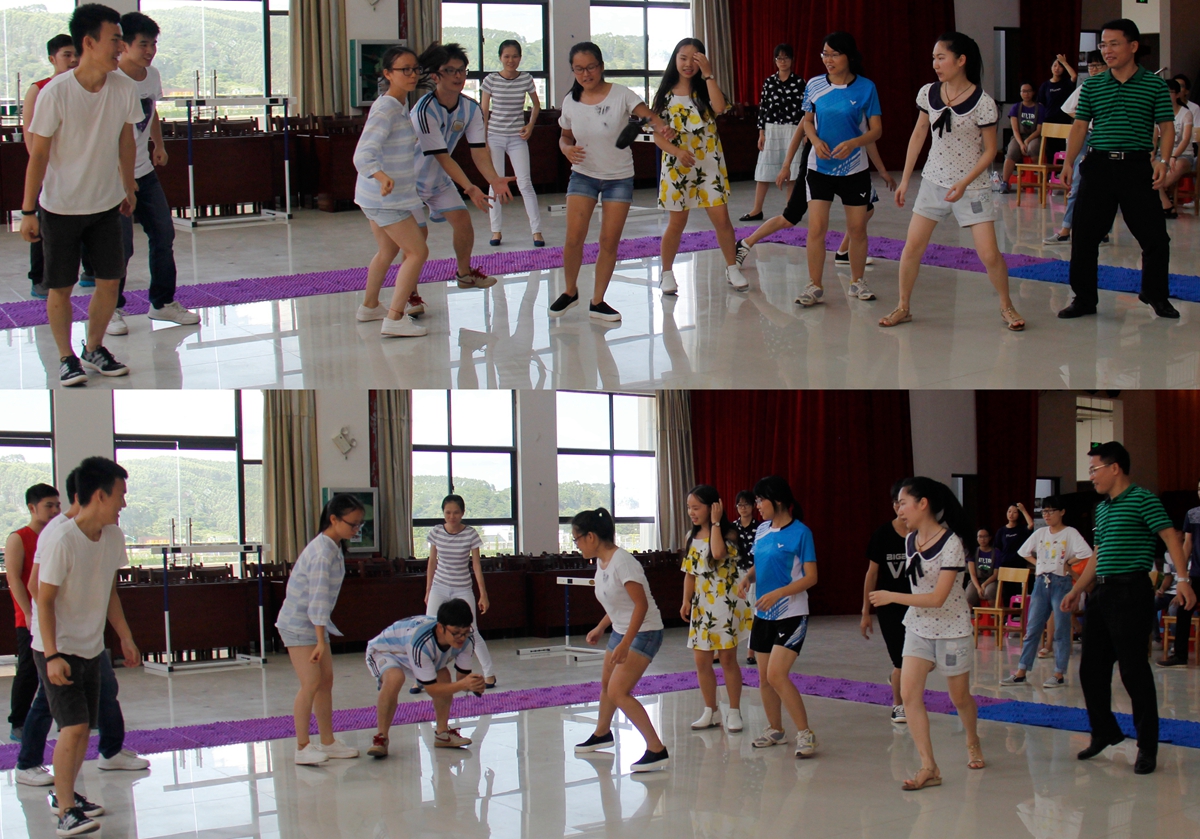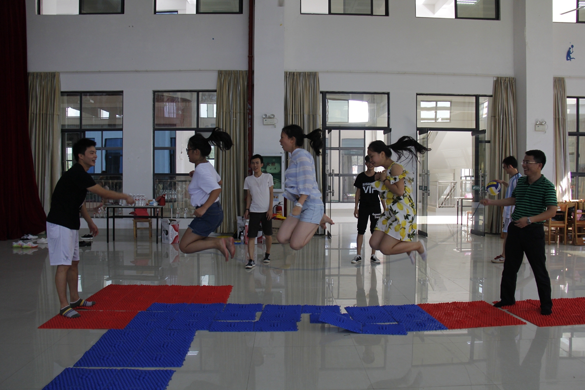 在游戏环节中,老师们没有了平时的严肃严谨,同学们也没有被老师平时的威严所拘束,大家忘记了彼此的身份,全身心的投入在活动中,现场充满了大家的欢笑声和加油声。