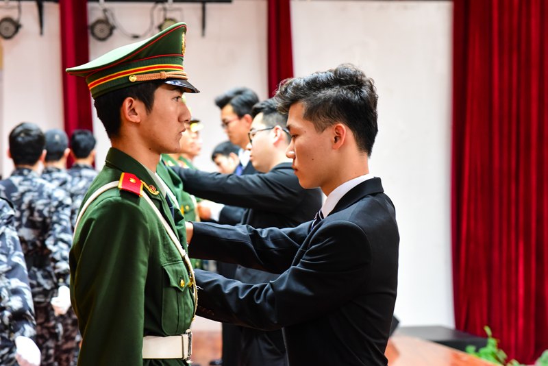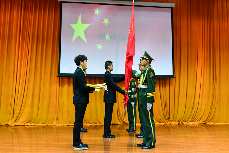 3月26日下午,小礼堂响起了中华人民共和国国歌《义勇军进行曲》,beat365平台唯一官网国旗护卫队首届授章仪式暨换届大会正式开始。武保部王怿清老师、团委黄英老师出席了本次大会。