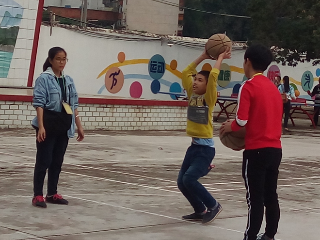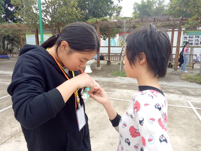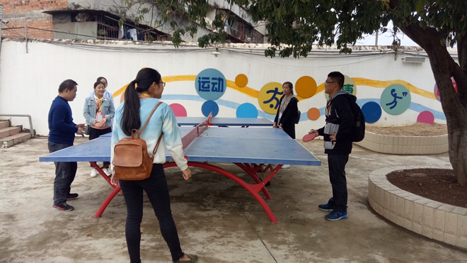 26日下午志愿者们到达邕宁区特殊教育中心。干净的校园,敞亮的教室,郁郁葱葱的树木,活泼的孩子,构成了一幅青春画面。志愿者在孩子们到来之前,为孩子们装扮教室。经过一番精心的布置后,小朋友们陆续来到学校。志愿者在教室与小朋友们互相交流后便来到户外体育场,在体育场上,小朋友们和志愿者们一起在体育场上打篮球,打乒乓球……渐渐的,小朋友们被现场气氛带动,原本的害羞和拘谨都被阵阵欢声笑语所替代。大家度过了一个温馨而又欢乐的下午。傍晚,我们的助残支教活动在一张温馨的大合照落下帷幕。