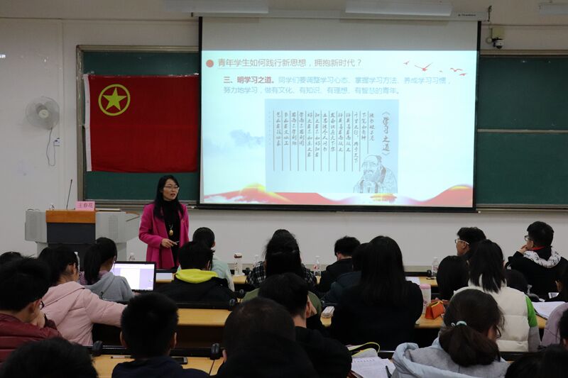 青年学生如何践行新思想,拥抱新时代?王春花老师提出自己的见解:当你茫然时,一定要多读书,充实自己,腹有诗书气自华。同学们既要学好书本知识,又要躬身实践,在实践中增长才干、砥砺意志、磨练品格。同时要积极培育和践行社会主义核心价值观,自觉加强社会公德、职业道德、家庭美德、个人品德建设,以实际行动引领社会文明新风。更要有“士以天下为己任”的气魄,树立“以我所学、服务国家”的信念,始终把个人发展和国家民族的前途命运结合起来,找准自己的人生坐标,担当起新时代赋予我们的责任和使命。立报国之志、修立身之德、明学习之道、读无字之书。