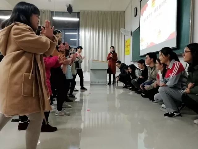 校团委黄英老师为2017级康复治疗班、2017级中药学1班、2016级中药3班共三个团支部进行学习十九大精神的宣讲。活动中,她通过历奇教育启发同学们的团结协作与思考能力,让同学们随机分成四个小组,再以游戏互动的形式打开同学们的心扉,简单的剪刀石头布游戏环节就成功的调动起同学们的热情。每位同学以小组讨论的形式对新时代、新气象、新思想、新目标四个关键词进行讨论,并上台发表自己对于学习十九大精神的感想,最后黄英老师再对每个关键词进行总结,整个宣讲过程获得同学们一致好评。