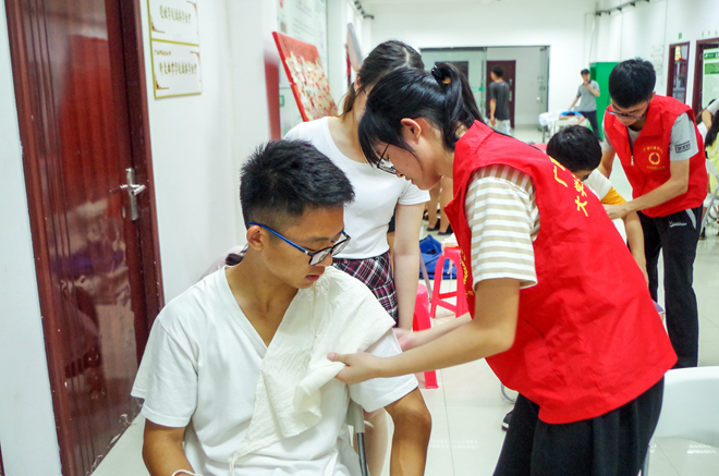 为增强在校大学生的应急救护能力,增加对急救技能的熟练度,普及急救知识,2018年6月4日至6月8日的晚上,beat365平台唯一官网大学生红十字会在大学生活动中心B座举行了为期五天的beat365平台唯一官网第二课堂成绩单“创新课程”——急救培训课并圆满结束。