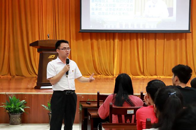 “不忘初心、牢记使命”。王万奇老师围绕“四个意识”为同学们介绍学生干部的基本要求。一是政治意识:学生干部,必须懂政治,讲政治,必须具备政治意识。二是大局意识:学生干部,要有大格局,要有大担当,要始终把集体利益放在首位!老师引用自己经历告诉我们,得其大者可以兼其小。三是核心意识:学生干部,要永远把团委这个内核装在心里,把广大同学这个真核放在心头。四是看齐意识:学习使人内心踏实不浮躁,使人目光远大不短浅,要永远像优秀的人学习,看齐。王万奇老师强调到:学生干部的前提是学生,学习是学生的本职。