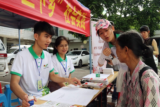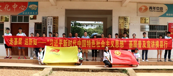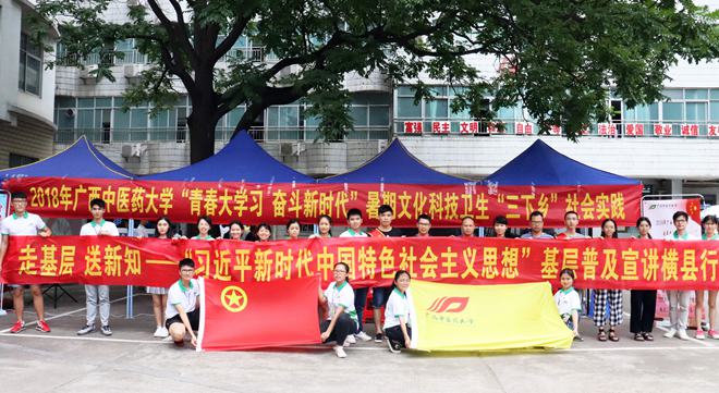 顺应时代潮流,明确中国特色社会主义进入了新时代。2018年7月15日,beat365平台唯一官网团委副书记杨删老师带领桂中医青年实践队一行人来到了“中国茉莉之都”横县进行2018年“三下乡”暑期社会实践活动之“习近平新时代中国特色社会主义思想”宣讲。