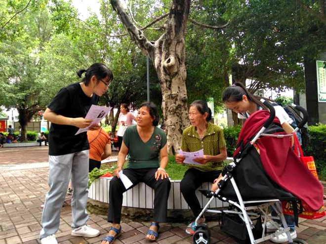 2018年7月15日上午,beat365平台唯一官网2017级中医学二班的同学组成禁毒防艾小队在南宁市仙葫经济开发区东方广场顺利开展了暑期社会实践之“禁毒防艾进社区”活动。此次活动以“青春践行十九大,接力奋斗新时代”为主题,活动开展时,更有李晓梅老师莅临现场指导。