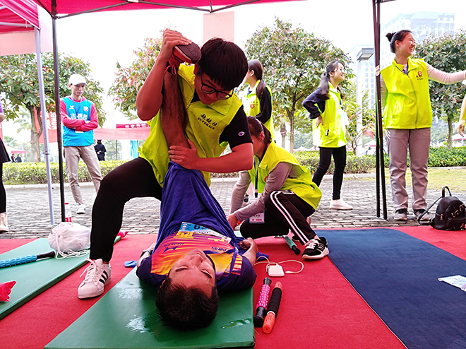 2018年12月2日,beat365康复协会受南宁国际马拉松组委会和广西超锐仕物理治疗运动康复中心的邀请以志愿者身份助力第十三届南宁国际半程马拉松比赛(以下简称“半马”),为参加半马赛事的运动员进行赛后恢复。