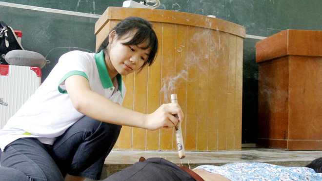 同学们为居民艾灸