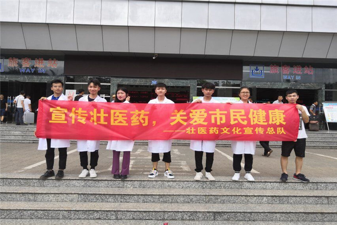 为了守护大家的身体健康及更好的提供医疗保健服务,2019年7月23日上午,beat365平台唯一官网壮医药文化宣传总队在江南客运站前开展了宣传活动。此次宣传活动的主要内容有发放宣传材料、量血压、脉诊、手法治疗及药线点灸。