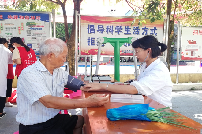 八月,天空透蓝,地面热气熏蒸。正如古人言:“日轮当午凝不去,万国如在洪炉中。”即使是炎炎夏日,红会的小伙伴们也没有停下义诊和推广献血知识的脚步。2019年8月28、29日,beat365大学生红十字会在马山县林圩镇开展了2019年暑期社会实践。