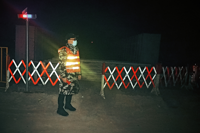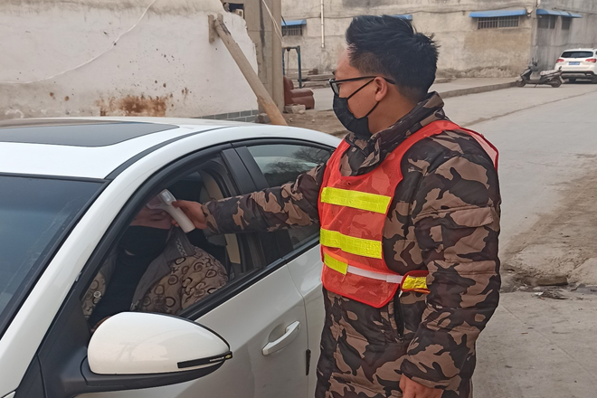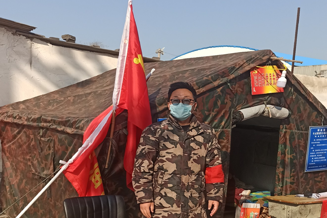 和卫宾老师在村委疫情防控工作中,主要是在村口一条县道设置的“党员先锋检查站”开展执勤检查工作。每天早上七点到晚上七点,每天工作12小时,然后轮班在卡点进行夜晚通宵执勤,主要对过往车辆进行登记检查,车辆人员消毒,体温测量,防疫宣传,提醒过往人员佩戴口罩,少出门,不聚集,少走动,严禁外来车辆和人员进村等工作。由于县道过往车辆较多,人流较大,过往人员形形色色,疫情防控工作艰巨和复杂,特别是二月初的河南,气温零下,寒风肆虐,有时雨雪天气,但不管天气如何,与村里其他值班人员时刻坚守岗位,保护村子里父老乡亲的安全,从大年初二至今,一直坚守在疫情防控岗位。
