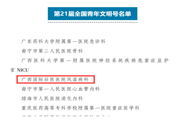beat365附属国际壮医医院风湿病科获一星级全国青年文明号称号