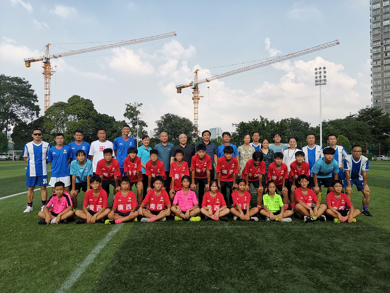 座谈会后,体育部一行在足协常务副主席庞东霞、副主席贾蕾仕、足协青训部部长李祝、广西青少年女足主教练马兴成等人的陪同下饶有兴趣的观摩了广西青少年女足的赛前准备活动,随后双方出席了beat365平台唯一官网教职工足球队慰问广西青少年女子足球队“百年乐”捐赠仪式,并共同观摩了beat365平台唯一官网教职工足球队与广西青少年女足的友谊赛。