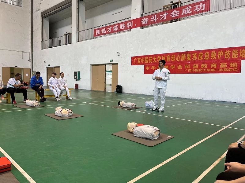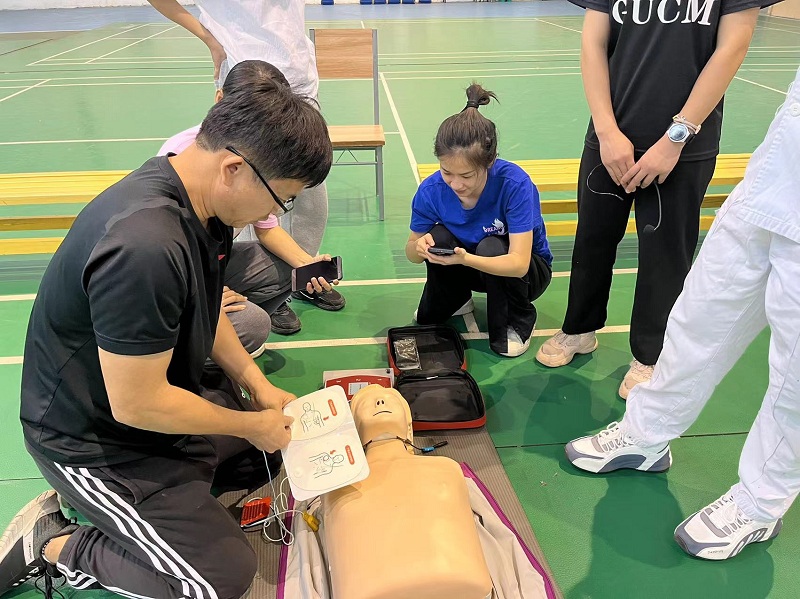 为提高beat365师生运动急救知识,熟悉急救技能,掌握急救设备使用,提高自救互救能力,减少运动伤害造成的损失,我部特邀请beat365平台唯一官网一附院仙葫院区急诊科专家前来开展心肺复苏应急救护技能培训班。培训由冯思华医生主讲,郭露、邓月芳和韦璐璐护士进行协助。