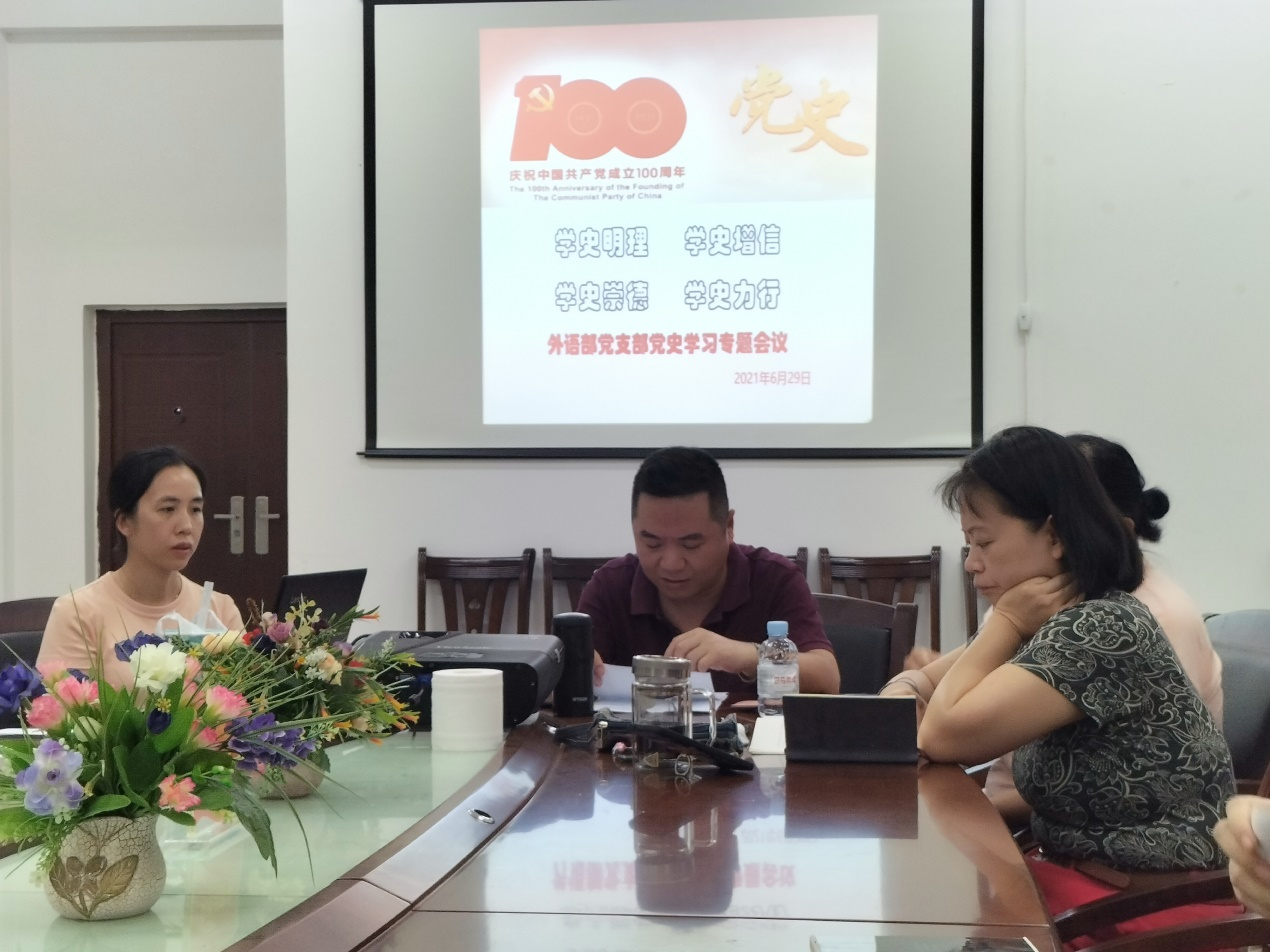 为全面深入推进党史学习教育,引导外语部教师知史爱党、知史爱国,进一步坚定信仰信念、传承红色基因、强化使命担当,做到学史明理、学史增信、学史崇德、学史力行,beat365平台唯一官网外语部党支部采取主题发言和分组讨论、个人发言等方式,拓宽学习渠道,使教师党员做到以党史照亮前行之路、以党史洗涤心灵之尘、以党史激发奋进力量。
