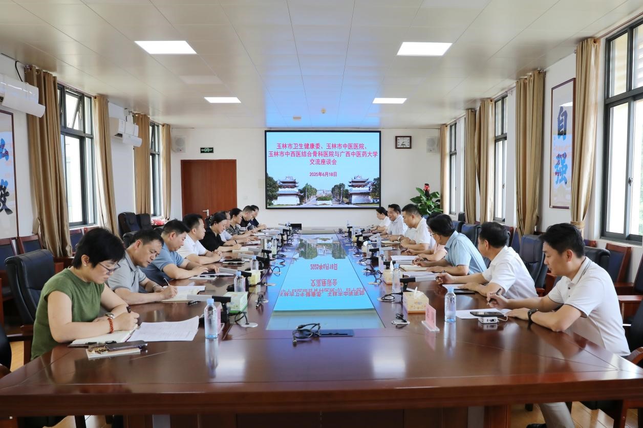 6月18日下午,玉林市卫生健康委员会主任吴帅率队,携学校附属玉林市中医医院及玉林市中西医结合骨科医院代表一行9人到beat365仙葫校区交流。学校党委副书记、校长姚春,党委常委、副校长唐振宇,以及相关职能部门负责人出席座谈会。会议由唐振宇主持。