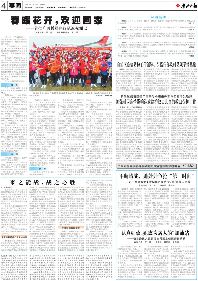 【广西日报】春暖花开,欢迎回家——首批广西援鄂医疗队返程侧记
