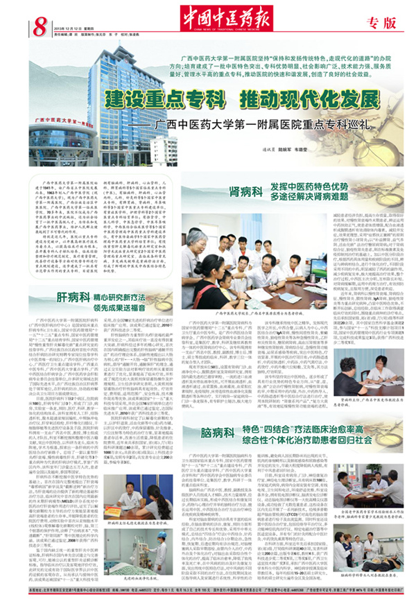 《中国中医药报》整版报道一附院重点专科建设