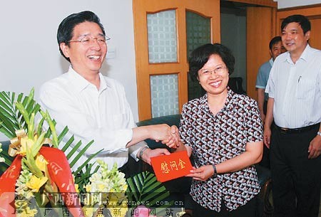 9日,郭声琨带着自治区党委、政府的深切关爱,在自治区党委常委、宣传部长沈北海,自治区副主席李康的陪同下,先后来到广西民族大学、广西师范学院、广西医科大学、广西大学亲切看望慰问教师,并通过他们向全区广大教师致以节日的祝贺和诚挚的问候,并就如何加快我区高等教育改革发展进行深入调研。