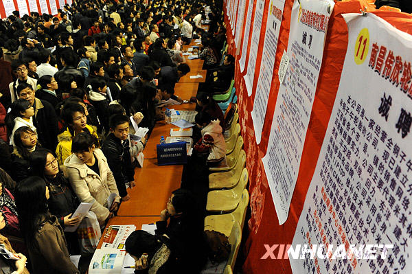 资料图片:12月6日,招聘会现场挤满求职者。当日,南昌冬季人才大型交流会在江西省体育馆举行,来自省内外215家用人单位,免费为求职者提供就业岗位5600余个。专业涉及软件开发、土木工程、市场营销、经营管理类、电子电气等32个专业,会场还特设了法律咨询台,为求职者解答促进就业和法律保护等问题,入场求职人数超过1万人。新华社记者宋振平摄