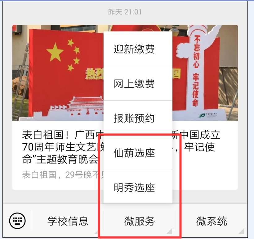 第二步:点击下方微服务选择校区进入选座系统进行预约选座