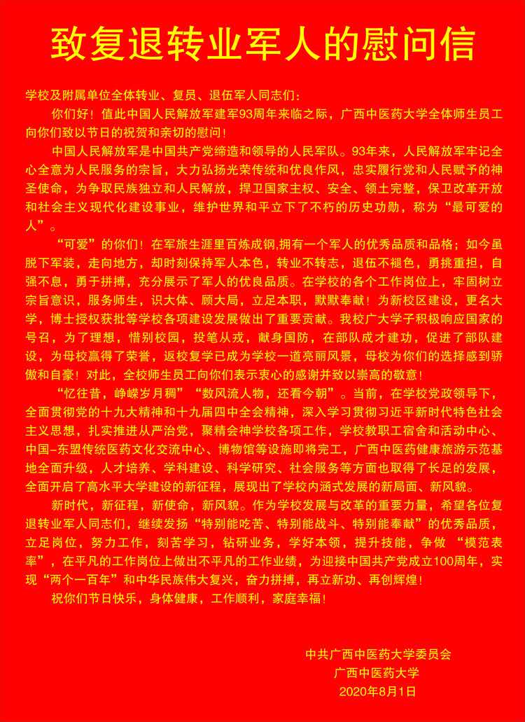 致复退转业军人的慰问信