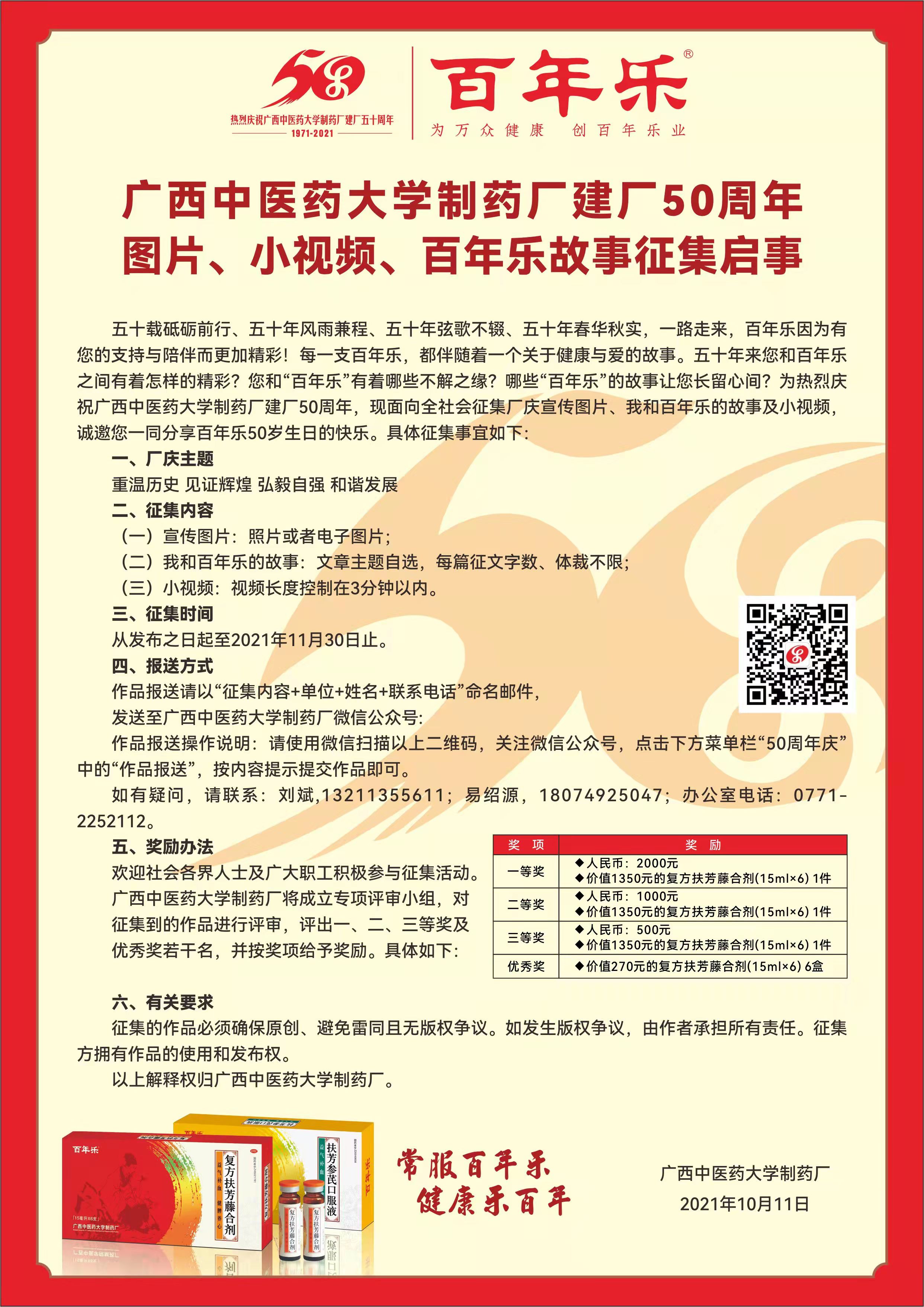 beat365平台唯一官网制药厂建厂50周年宣传图片、小视频、百年乐故事征集启事 来源:beat365平台唯一官网制药厂 作者:制药厂 日期:2021-11-01 点击数: 次 分享到: 打印正文 关闭本页