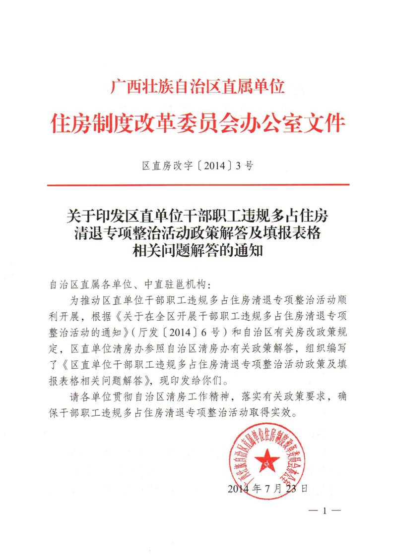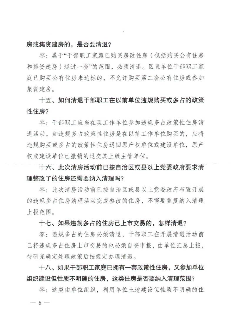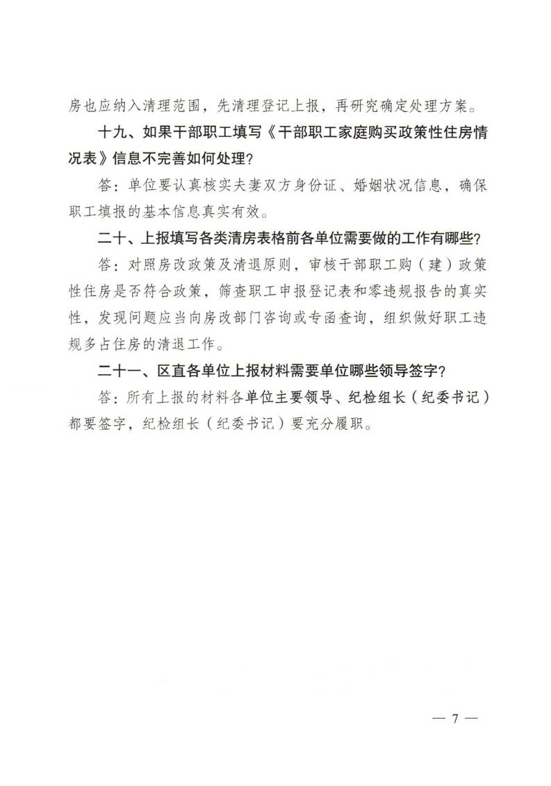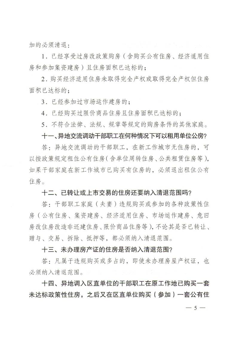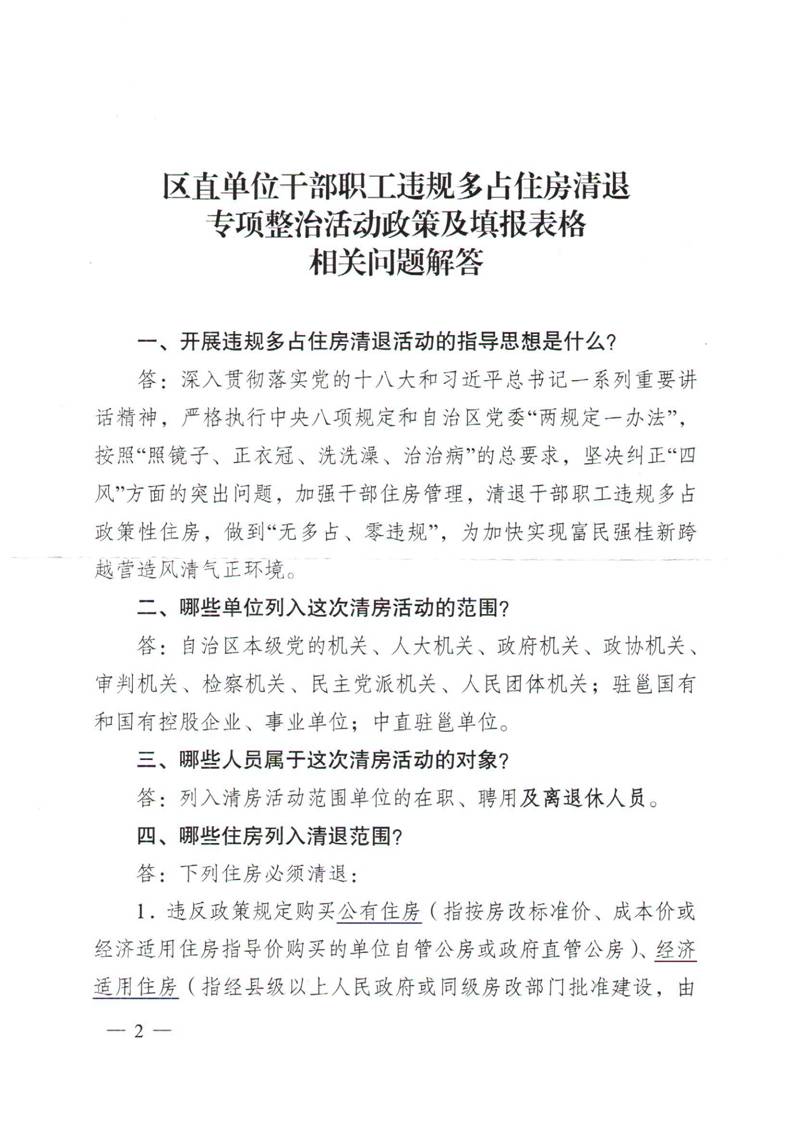 关于印发区直单位干部职工违规多占住房清退专项整治活动政策解答及填报表格相关问题解答的通知