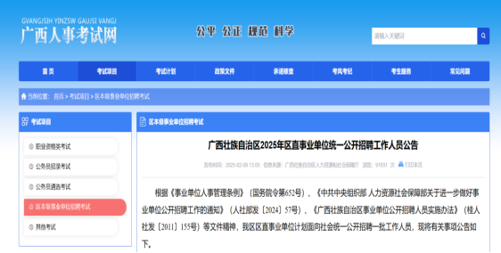 广西2025年区直事业单位统一公开招聘工作人员公告(beat365平台唯一官网设8个岗位共招23人)
